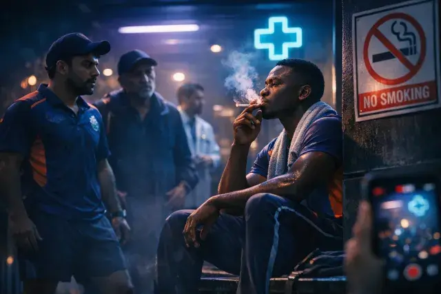 A video capturing Kagiso Rabada smoking a cigarette following a practice session has ignited widespread discussion online. Teammate Rashid Khan and staff members approached him in the footage, questioning the behavior in what appears to be a public area, possibly a hotel or ground. The one-minute clip, which spread rapidly on social media, reveals Rabada continuing to smoke despite the confrontation, dividing observers on personal choice versus public example.